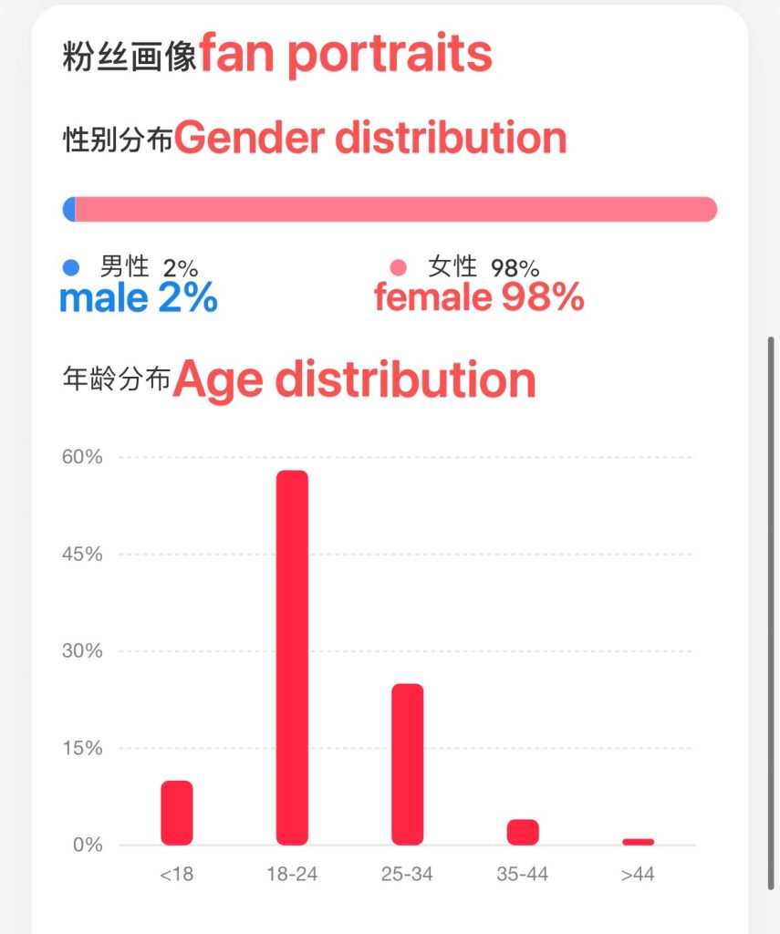 I’ve also started to shift the focus of my vlog content to these four. For example, in the morning, I’ll show how I make my healthy breakfast; at lunchtime, I’ll show what I do for cardio fitness; and in the afternoon, it’s make-up and ootd time. Unsurprisingly, the videos on these topics have garnered a lot of likes and attention from female viewers. Within six months, my account had reached a maximum of 98% female followers! As we all know, in the “female economy” market, female followers are the most valuable audience on the internet.